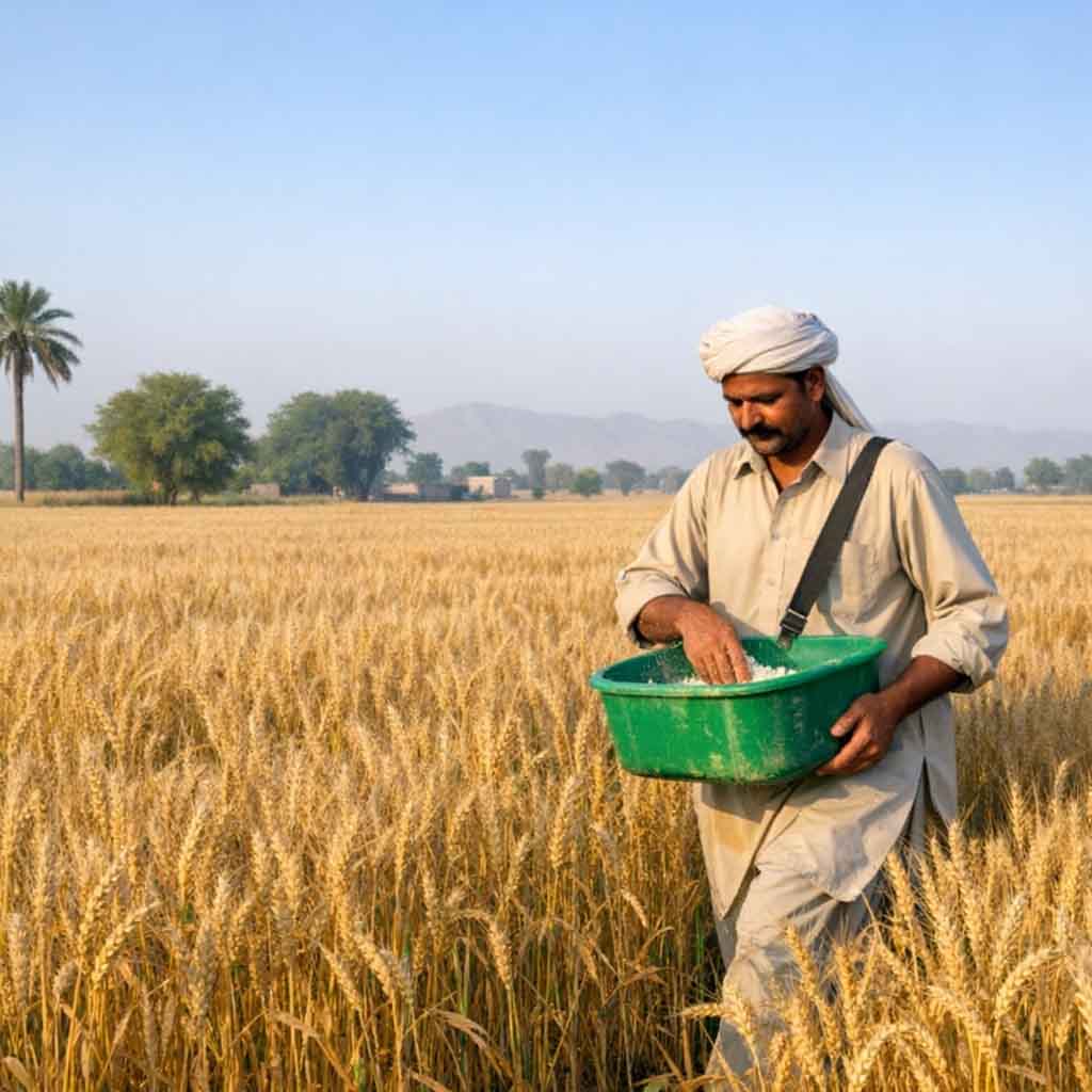 For most fields, DAP at sowing and Urea in split doses is a very good plan. In weak soils, NPK can also be used. This is a common and effective wheat fertilizer Pakistan strategy.